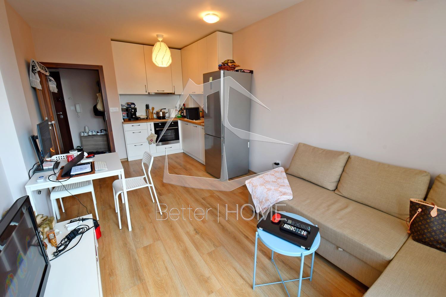 Предлагаме Ви отлична възможност да станете наемател на двустаен апартамент, намиращ се в нова сграда с асансьор и контролиран достъп в непосредствена близост до парк „Гео Милев“ . На метри разстояние ще намерите, спирки на градски транспорт, магазини, заведения,училища и детски градини. Жилището се намира на четвърти етаж, а площта е функционално разпределена между всекидневна с кухня, спалня, баня с тоалетна,антре и тераса. Апартаментът е нов и всеки детайл е изпипан до съвършенство. Интериорът е решен в топли цветове, а обзавевеждането предлага всичко, от което се нуждаете за комфортното си ежедневие. Модерен кухненски бокс с вградени електроуреди- хладилник, пералня, печка, маса със столове и мека мебел . Спалня с голямо легло, гардероб с плъзгащи механизми, скрин и нощни шкафчета. Напълно оборудвана баня. Обстановката Ви обещава добре прекарано време в светъл, топъл и комфортен дом с ниски консумативи .За повече информация и оглед на телефон 0885865877 Николай Радев. Оферта 3093