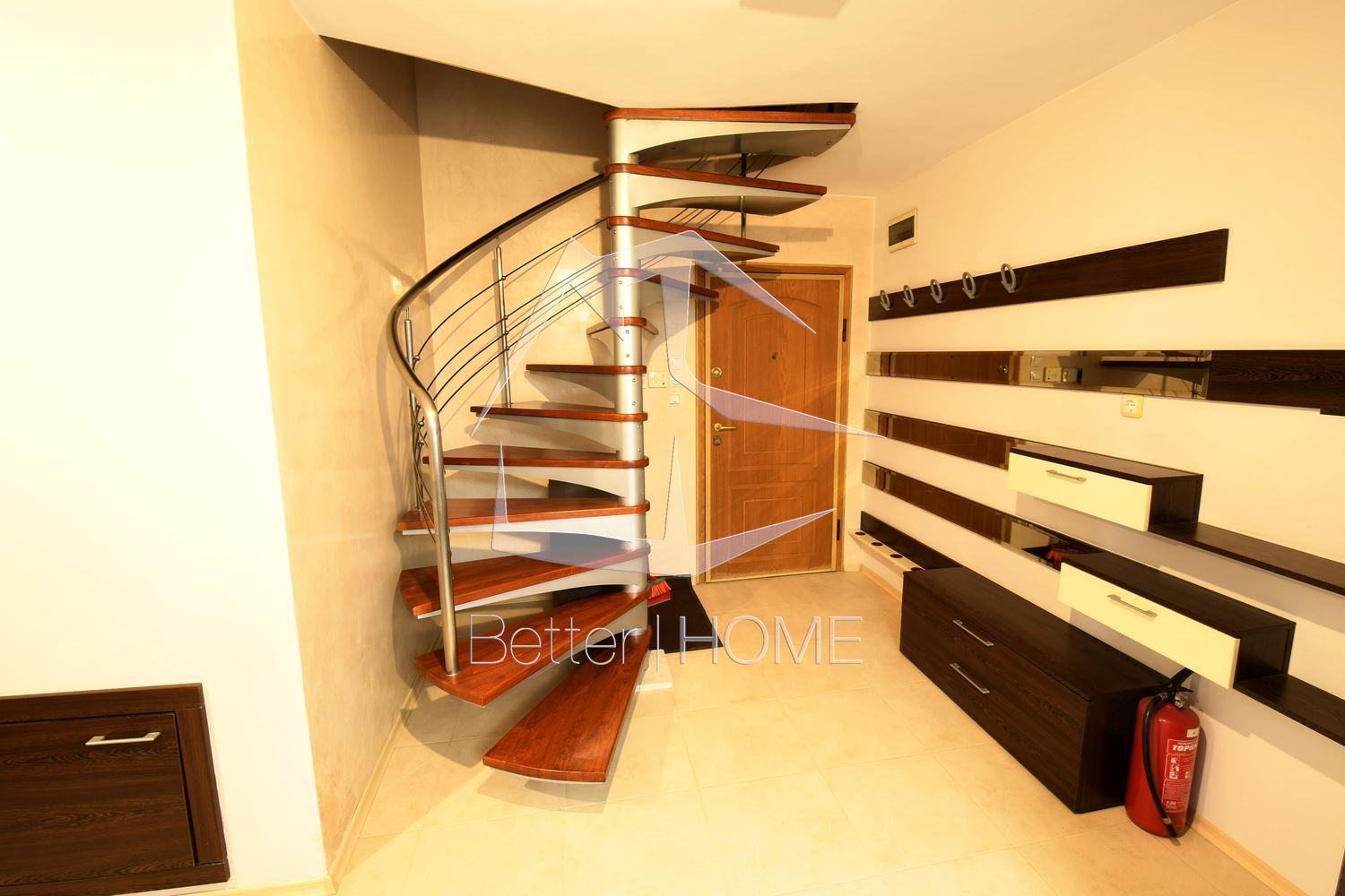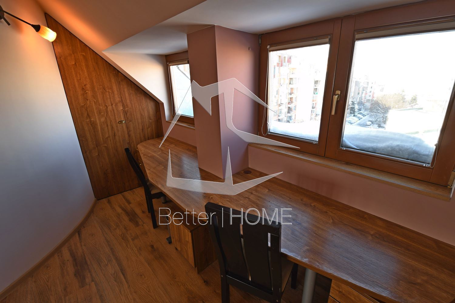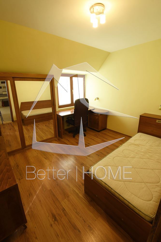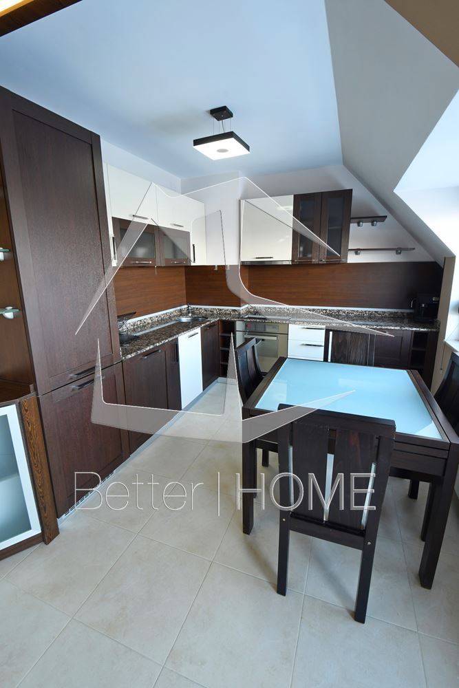 Луксозно обзаведен мезонет с хол, трапезария и кухня, 2 спални, 1 баня и 2 балкона на първо ниво. На второ ниво спалня/кабинет от 26 кв. м. и килер, баня 10 кв. м. с джакузи. На 6 минути пеша от Мол Сердика и на 200 м от парк Гео Милев. Ет 5. Изложение изток-запад. Климатици и ТЕЦ (апартамента е с много добра изолация и сметките за парно са много ниски – около 100 лева на месец през най-студените месеци). 42′ LCD телевизор и система за домашно кино. На 200 метра от парк Гео Милев. Намира се на най-високото място в квартала. Оферта : 95