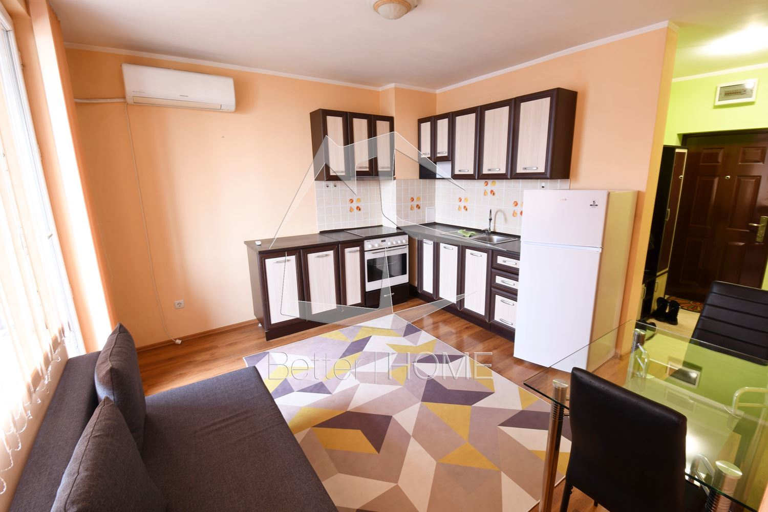 Апартаментът е разположен на шести етаж с площ от 50 кв. м. разпределена между антре, дневна с кухненски бокс, спалня, баня с тоалетна и голям балкон с прекрасна гледка към планината и града. Завършен с PVC дограма, стени латекс, подове с ламиниран паркет и теракота. Отоплението e на климатици. Имотът е обзаведен с всичко необходимо за комфортното ви ежедневие. Пред блока има спирки на градски транспорт ( тролей 4, автобус 384 ) На 6 – 7 минути пeшеходно разстояние има спирка на автобус 204,304, 88, 7 и 8. За повече информация и оглед се обадете на телефон 0885677006-Божидар Младенов