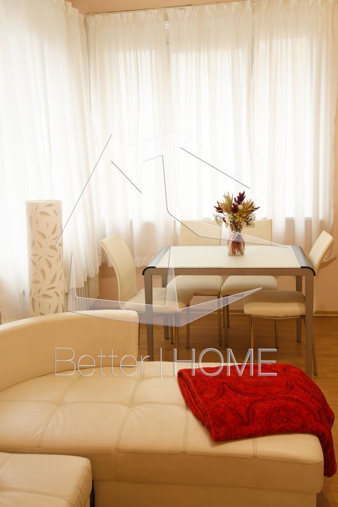 Представяш си своя дом в класически, модерен градски стил превъплъщение на уютната атмосфера с топ локация в сърцето на столицата? Предлагаме ти отлична възможност да станеш наемател на двстаен апартамент намиращ се в сграда с поддържани общи части, и котролиран достъп на Петте Кьошета . Локацията е не само любимо място за разходки и отдих в идеалния център на столицата, но и удобство за живеещите. На метри разстояние ще намерите метростанция НДК и парка, спирки на градски транспорт, магазини, заведения, банки. Жилището се намира на трети етаж, а площта е функционално разпределена между всекидневна, кухненски бокс и трапезария , две спални, като едната от тях ще бъде обзаведена по желание на клиентите, баня и тоалетна и антре. Апартаментът е изцяло ремонтиран и всеки детайл е изпипан до съвършенство. Интериорът е решен в светли цветове в комбинация с класически ламиниран паркет, а обзавевеждането предлага всичко, от което се нуждаете за комфортното си ежедневие. Напълно оборудвана баня. Обстановката ти обещава добре прекарано време в светъл, топъл и комфортен дом, а локацията е сред емблематичните места на столицата.